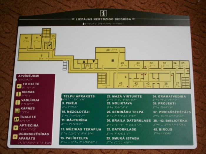 Taktilā kartē var būt attēlots telpas, parka vai ielas plāns. Kartes satur gan vizuālu, gan taustamo informāciju. Tātad, viņus var izmantot jebkurš cilvēks, neatkarīgi no redzes stāvokļa. Vadlīnijas, ielas un pārējie apzimējumi tika izpildīti reljefā. Parastais teksts dublēts ar Braila rakstu. Kartes ir lasamas uz tausti. Kartes izmērs atkarīgs no taktilas informācijas apjoma. Braiļa raksts paņems vairāk vietas, nekā parastais teksts. Šie objekti ir divu veidu: 1. Portatiīvie (vieglie, neliela izmēra); 2. Stacionārie (stiprināmi pie sienas).