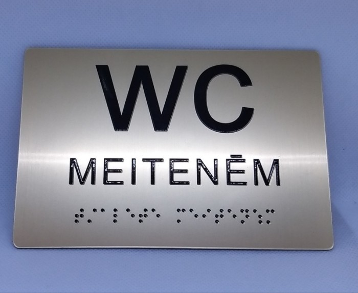 Visas norādes un piktogrammas atbilst tehniskajām prasībām. Tiek veidotas kontrastās krāsās. Lasās ar taustes palīdzību. Materiāls alumīnijs vai plastikāts